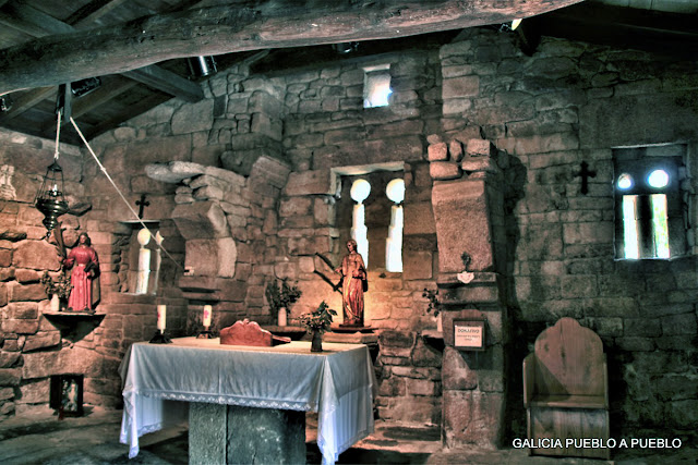 Tiene un cuerpo de tres naves muy estrechas, separadas por pilares que ya no existen. Pequeños hitos de granito exteriorizan que sobre ellos se situarían las columnas.